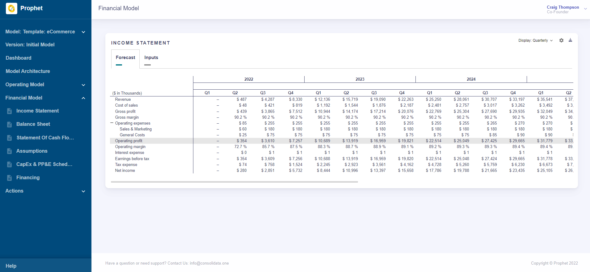 “Prophet helped me build models that are easy to analyze, rollforward, and explain to clients.”